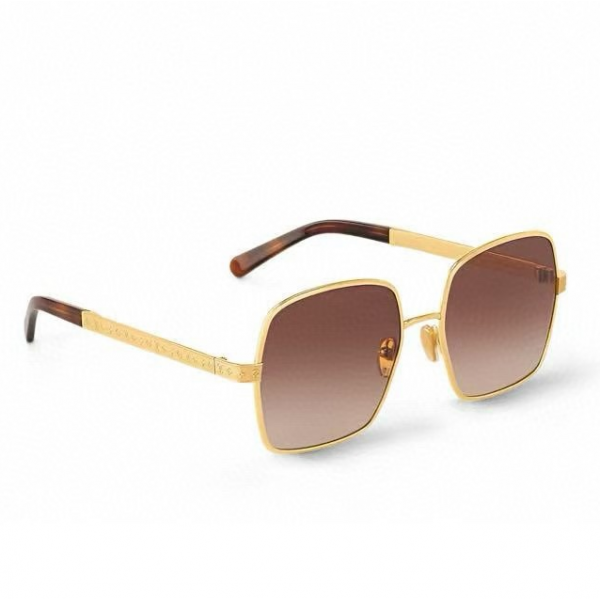 템플에는 골드 또는 실버 컬러로 LV 로고가 정교하게 장식되어 있어 브랜드 정체성을 강하게 드러냅니다.