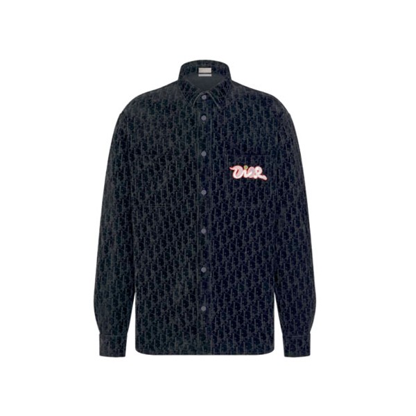 • 뒤로 디올 x 카우스 코튼 블렌드 데님 오버셔츠 블루 513D595A321X-C584 (X공장) > 남성의류
