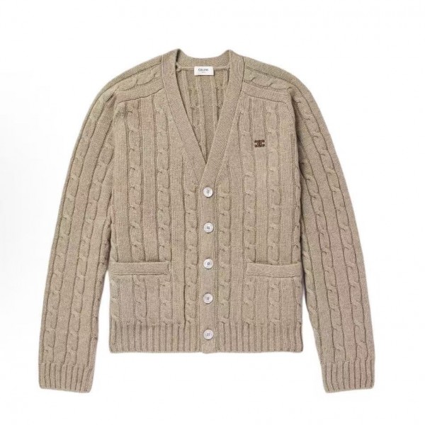 셀린느 케이블 니트 캐시미어 가디건 카키 (X공장)