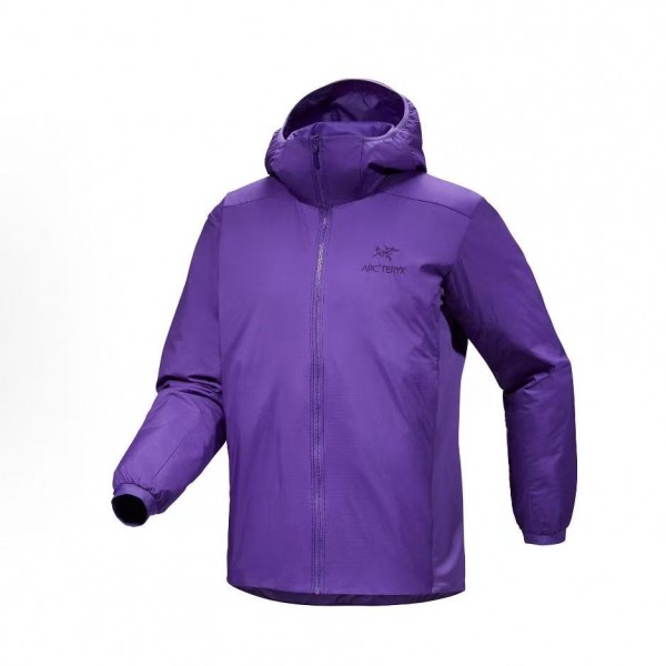 • 뒤로 아크테릭스 Atom Hoody M 자수 로고 후드 다운 자켓 퍼플 > 남성의류