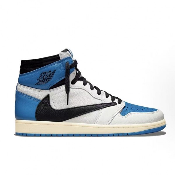 나이키 조던 브랜드가 트래비스 스캇(Travis Scott)과 프라그먼트 디자인(Fragment Design)과의 협업으로 선보인 에어 조던 1 하이 OG SP “밀리터리 블루” 모델입니다.