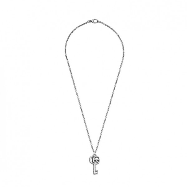 구찌 더블지 키 모티프 925 실버 네크리스는 브랜드의 상징적인 더블지 디자인과 열쇠 형태를 결합한 구조가 특징인 제품이다.