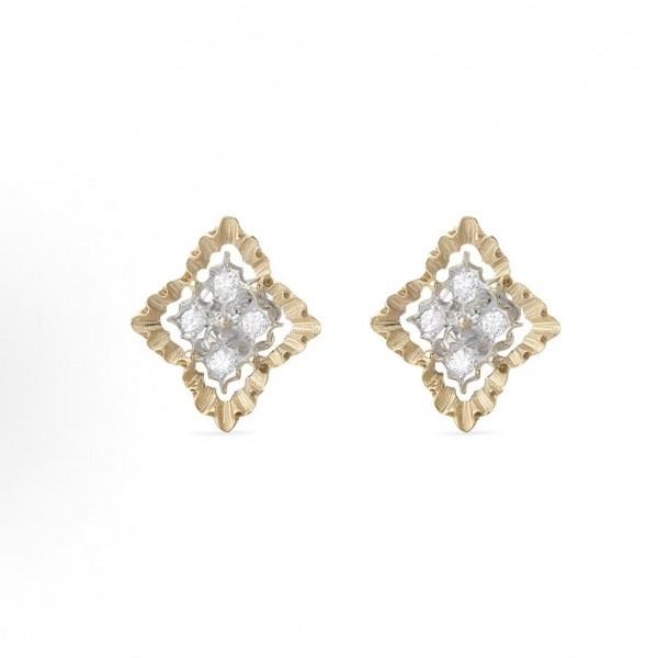 부첼라티 다이아몬드 인레이 18K 골드 이어링은 정교한 다이아몬드 세팅과 고급스러운 18K 골드 소재가 조화를 이루는 여성용 주얼리이다.