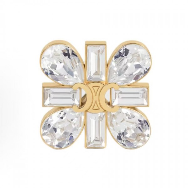 황동 소재로 제작되어 견고하면서도 은은한 골드 광택을 자랑하며, 브로치 전체에 새겨진 CELINE 로고 각인이 세련된 포인트를 더합니다.
