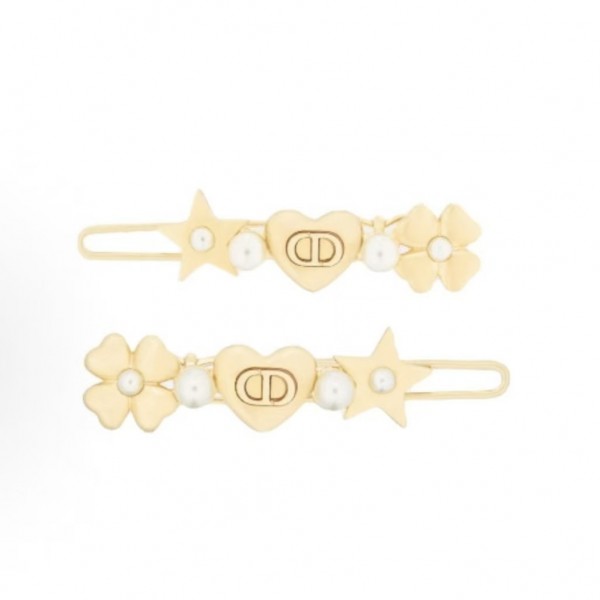 디올 정교한 디자인 골드 메탈 헤어핀은 브랜드 특유의 우아한 감각과 고급스러운 디테일이 담긴 여성용 헤어 액세서리로,