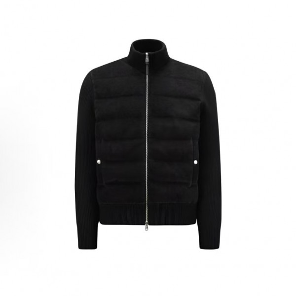 몽클레르 솔리드 니트 하이넥 지퍼 긴팔 다운 재킷 남성용 블랙 (탑몽X)