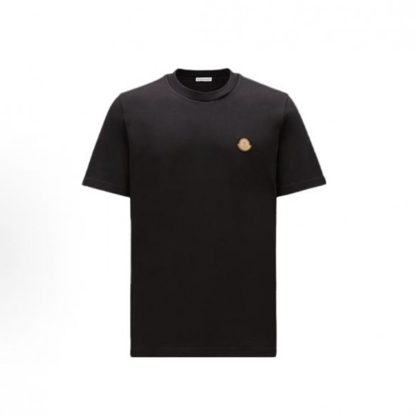 몽클레르 솔리드 로고 패치 라운드넥 반팔 티셔츠 남성용 블랙 (탑몽X)
