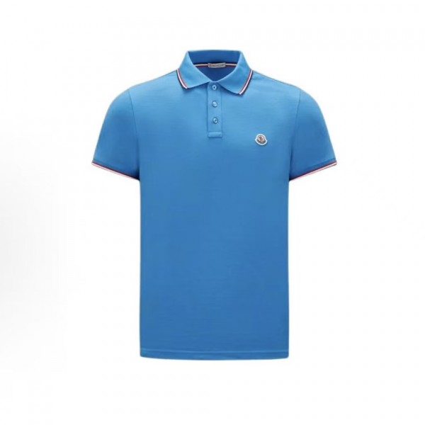 몽클레르 남성 솔리드 컬러 오버핏 폴로 반소매 티셔츠 블루 (탑몽X)