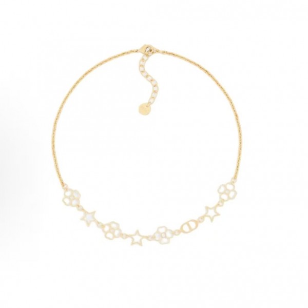 디올 Lucky 시리즈의 클로버 & 스타 골드 메탈 목걸이는 행운을 상징하는 두 가지 모티프를 현대적으로 재해석한 주얼리로,