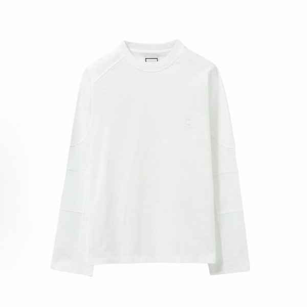 • 뒤로 우영미 SS25 단색 캐주얼 라운드넥 긴팔 티셔츠 남성용 화이트 > 남성의류