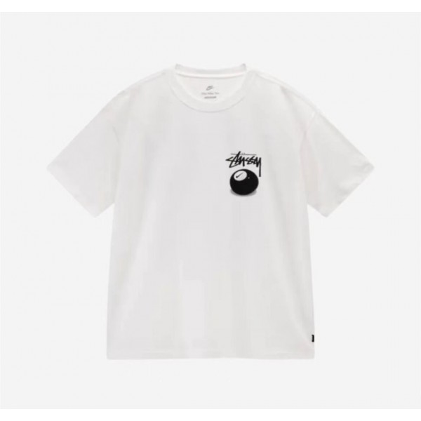• 나이키 x 스투시 FW22 컬렉션 레터링 블랙 당구 프린트 빈티지 스포츠 반소매 티셔츠 화이트