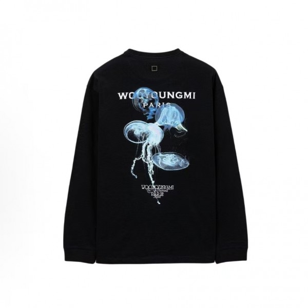 우영미 로고 프린트 라운드넥 긴팔 티셔츠 남성용