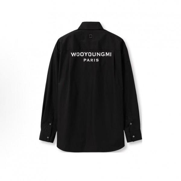 우영미 백 로고 포인트 스프레드 칼라 버튼업 긴팔 셔츠 남성 블랙