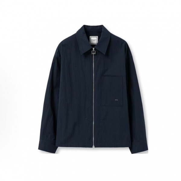 우영미 솔리드 스프레드 칼라 루즈 핏 지퍼 긴팔 셔츠 남성 네이비
