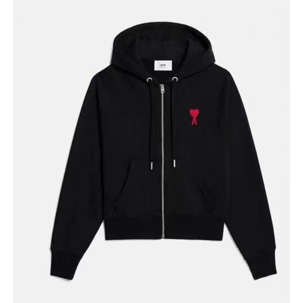 아미파리스 SS23 로고 엠블럼 프린트 지퍼 후드 스웨트셔츠 블랙 (탑아미공장)