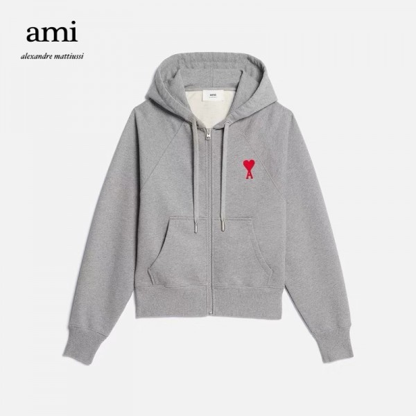 아미파리스 SS23 로고 엠블럼 프린트 지퍼 후드 스웨트셔츠 그레이 (탑아미공장)