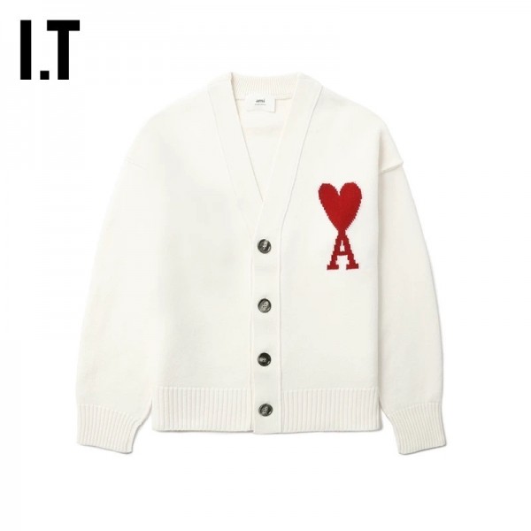 • 뒤로 아미파리 클래식 하트 로고 V넥 니트 스웨터 긴팔 루즈핏 화이트 (탑아미공장) > 남성의류