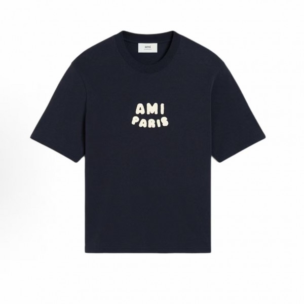 아미파리스 SS25 코튼 크로셰 로고 오버핏 반팔 티셔츠 블루 (탑아미공장)