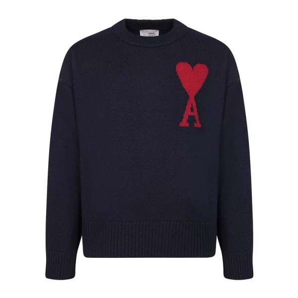아미파리스 빅 하트 레드 로고 울 라운드 니트 블루 (탑아미공장)