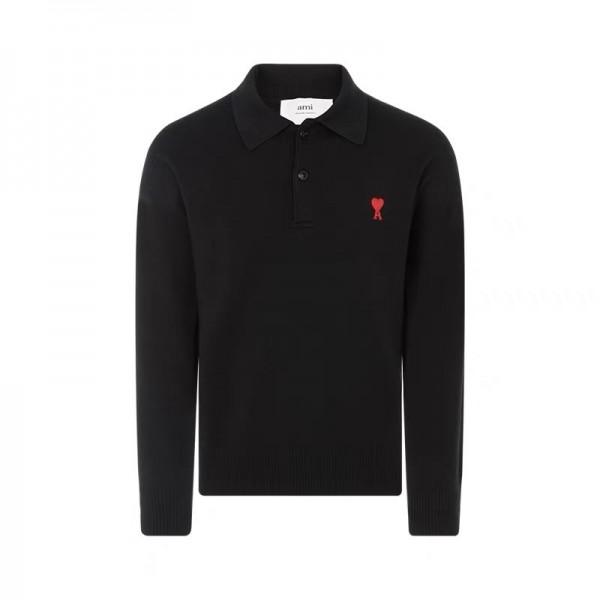 아미파리 솔리드 자수 로고 풀오버 니트 긴팔 폴로 셔츠 남성 블랙 (탑아미공장)