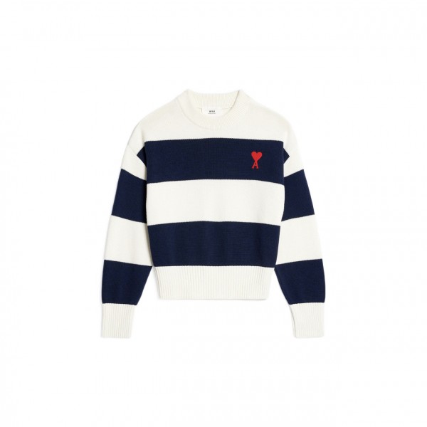 아미파리 배색 스트라이프 로고 자수 크루넥 긴팔 니트 스웨터 남성 블루화이트 (탑아미공장)