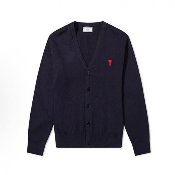 아미파리 SS22 스몰 하트 레드 라벨 로고 울 니트 남성용 네이비 (탑아미공장)