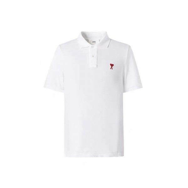 아미파리 SS24 컴포트 핏 하트 패턴 코튼 반팔 폴로 셔츠화이트 (탑아미공장)