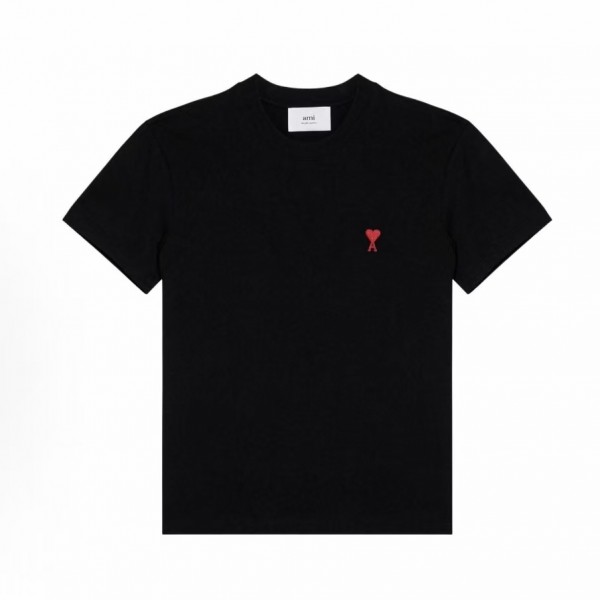 아미파리 단색 하트 로고 자수 라운드넥 루즈핏 반팔 티셔츠 블랙 (탑아미공장)