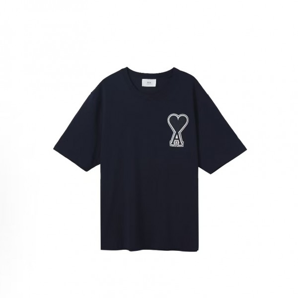 • 뒤로 아미파리 SS21 하트 로고 자수 라운드넥 반소매 티셔츠 네이비 (탑아미공장) > 남성의류