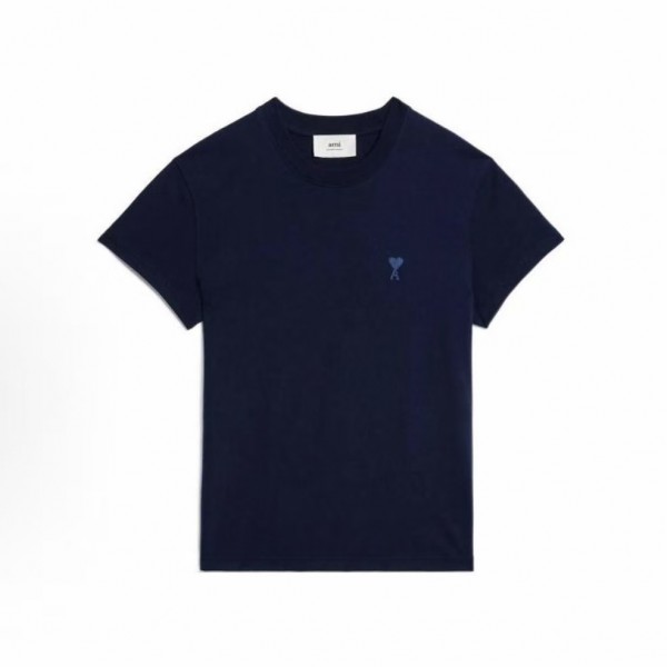 아미파리 SS23 솔리드 컬러 하트 자수 라운드넥 반팔 티셔츠 네이비 (탑아미공장)