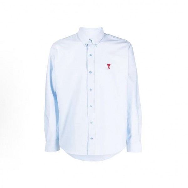 아미파리 단색 카라 싱글 버튼 캐주얼 긴소매 셔츠비 블루 (탑아미공장)