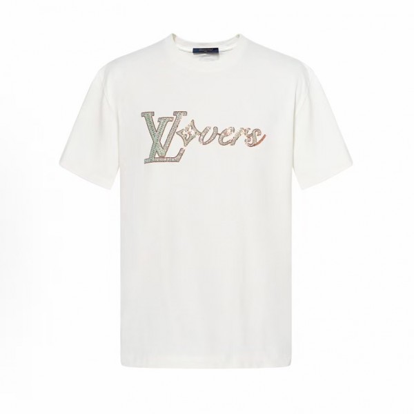 • 뒤로 루이비통 FW24 로고 레터 프린트 크루넥 반팔 티셔츠 남성용 화이트 (X공장) > 남성의류