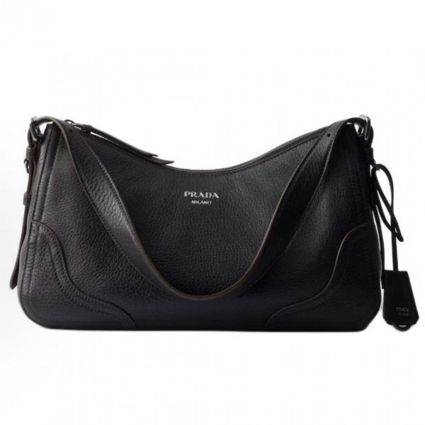 숄더 스트랩에는 프라다 레터링 로고 디테일이 적용되어 브랜드 아이덴티티를 감각적으로 표현합니다.