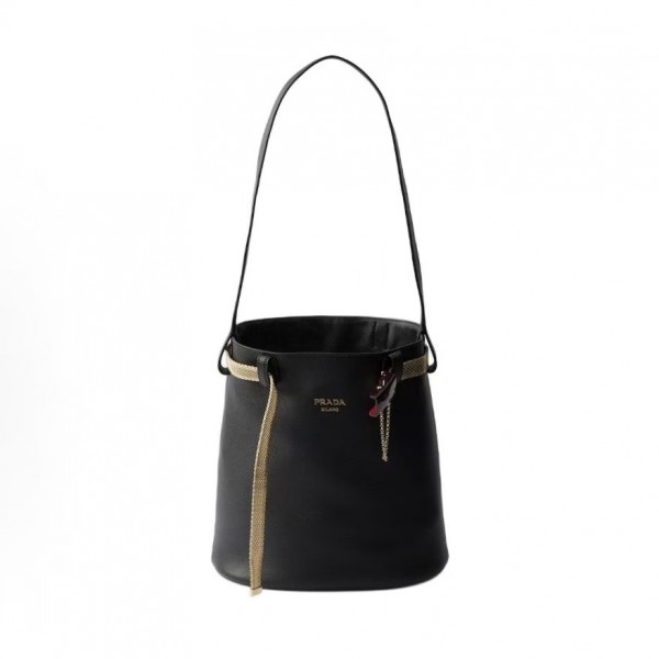 이 제품은 이탈리아 럭셔리 브랜드 Prada의 카프스킨 숄더백 1BE085A 모델입니다.