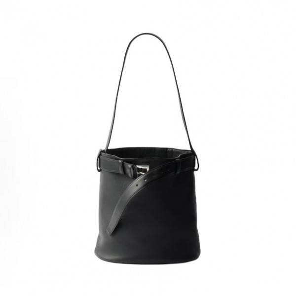 이 제품은 이탈리아 럭셔리 브랜드 Prada의 Buckle 라인 레더 버킷 숄더백 1BE085 모델입니다.