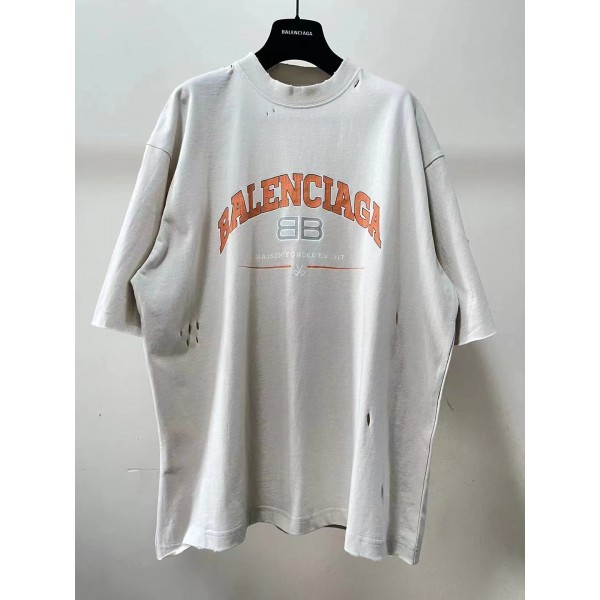 • 뒤로 발렌시아가 메종 로고 반팔 티셔츠 > 의류