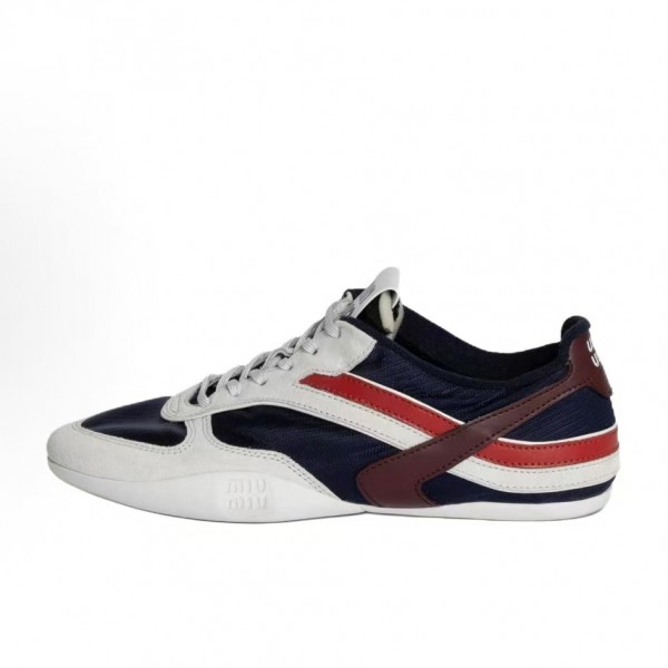 이 제품은 **미우미우(MIU MIU)**에서 선보인 세련된 트리컬러 레더 스니커즈로,