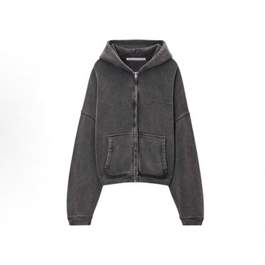 • 알렉산더왕 SS25 테리 코튼 워시드 로고 프린트 후드 집업 오버핏 긴팔 맨투맨