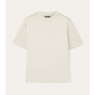 로로피아나 SS25 페를레도 솔리드 크루넥 반소매 티셔츠 남성용 크리미 아몬드 (B+공장) > 남성의류