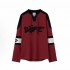 • 우영미 레터 드롭숄더 브이넥 스트랩 긴팔 티셔츠 남성용 레드