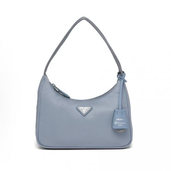 • 프라다 리에디션 트라이앵글 로고 나일론 미니 토트백 1N204M 스카이 블루