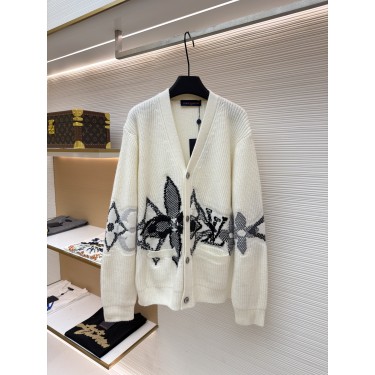 • 루이비통 패턴 싱글 버튼 가디건 V넥 니트