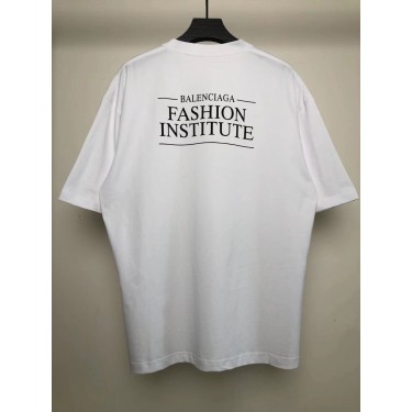 • 발렌시아가 패션 인스티튜트 프린트 빈티지 반팔 티셔츠 화이트