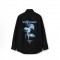 우영미 레터링 애니멀 프린트 포인트 스프레드 칼라 버튼업 롱슬리브 셔츠 남성 블랙